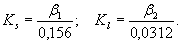 По формулам (4.4), (4.5): Ks = β1/0,156 = 0,085/0,156 = 0,55; Kl = β2/0,0312 = 0,025/0,0312 = 0,8;