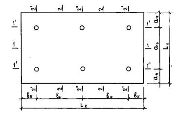 Рис. 14. Схема расположения петель (отверстий) при монтаже плит за шесть точек