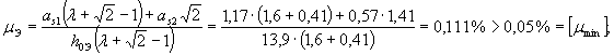 4) Проверка выполнения п. 5.16 [20] на минимальное армирование. Эквивалентный процент армирования по формуле (6.3)