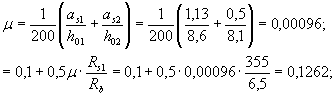 asэ = 0,5 (as11 + as2) = 0,5 (6,49 + 1,2) = 3,85 см2/м;