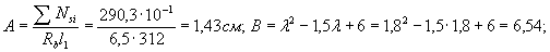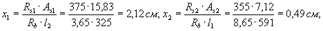 x1 = (λ – 1,5) A/B=(1,8 – 1,5)·1,43/6,54 = 0,066 см; x2 = 6A/B = 6·1,43/6,54 = 1,31 см;