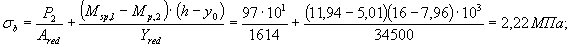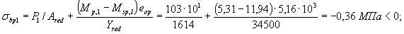 σ’6 = σ’q = 0; σ’6 = 35 МПа; σ’b = σ’6 + σ’8 + σ’q = 0 + 35 +0 = 35 МПа; ε’b = σ’b/Esp = 35/19·104 = 18,4·10-5;