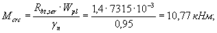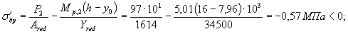 σb = 0; σ1-6 = σ1,2 + σ6 = 102 + 0 = 102 МПа; σsp,1 = σsp – σ1-6 = 695 – 102 = 593 МПа; Вторые потери: σb = 35 МПа; σ9 = 0 (по аналогии с σ6); σ1-9 = σ1-6 + σ8 + σ9 = 102 + 35 + 0 = 137 МПа; σsp,2 = σsp – σ1-9 = 695 - 137 = 558 МПа; Р2 = σsp,2 asp = 558·1,74·10-1 = 97 кН; Мp1,2 = P2 eop = 97·5,16·10-2 = 5,01 кНм. Моменты трещинообразования: