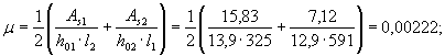 ξul,2 - относительная высота сжатой зоны, определяемая по формуле (3.25) с учетом того, что коэффициент армирования μ для сечений АЕ … ДЕ находится по формуле (3.24), а для сечений, пересекаемых только арматурой в направлении l1 , по формуле