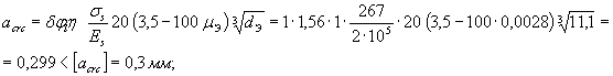 4) Проверка раскрытия трещин. По формулам (3.33) - (3.39):