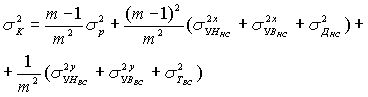 Рис. 2.6. Зависимость среднего квадратического отклонения размера зазора в горизонтальном стыке между ПП и НС (ВС) σК1 , НС (ВС) и ПП σК2 от числа размеров зазоров m, в цепи сопрягаемых элементов (п.7 табл. 2.1)