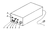 Рис. 3. Внешний вид блока питания ЛСНК: 1 - шнур подвода напряжения сети; 2 - разъем "Выход" для подключения высоковольтного кабеля от излучателя; 3 - разъем "Выходное напряжение" для устройства сканирования; 4 - регулятор скорости; 5 - переключатель "Двигатель - Выкл."; 6 - клемма "Земля"; 7 - переключатель "Сеть - Выкл."; 8 - лампочка сигнализации подачи напряжения сети; 9 -предохранитель на 0,5 А