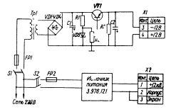 Рис. 4. Принципиальная электрическая схема блока питания JICHK Оно состоит из следующих основных узлов: трегера (используется трегер от нивелира H-3), блока сканирования, монтажного основания, блока питания, двигателя и защитного кожуха. УСЛГ закрепляется на специальном кронштейне над ЛЗЦВ.