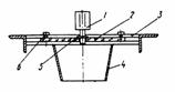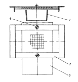 Рис. 8. Дифракционные диафрагмы: а - в виде тубуса; б - в виде пластинки; 1 - дифракционное отверстие 2.7. Устройство визуального наблюдения (УВН) (рис. 9) предназначается для проектирования на него лазерного излучения ЛЗЦВ и наблюдения его проекции на монтажном горизонте. Оно представляет собой плоскую металлическую раму с пазами и конусообразным тубусом, закрепленным к ее нижней поверхности. В пазах рамы располагается плексигласовая пластина (палетка), имеющая две степени свободы. Рама с помощью конусообразного тубуса фиксируется в рабочих (круглых) проемах над ЛЗЦВ. Палетка представляет