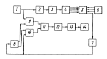 фотодиоды к усилителю (7). Одновременно импульсы генератора через схему