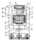 Рис. 1. Малогабаритный вращающийся лазерный зенит-центрир: 1 - металлическое кольцо; 2 - оптическое защитное стекло;. 3 - подвижная диафрагма; 4 - защитная обойма; 5 - цилиндрические уровни; 6 - крепежные винты; 7 - механический клиновой компенсатор; 8 - оптический клиновой компенсатор; 9 -влагопылепротивоударный защитный кожух лазерного излучателя; 10 - трегер; 11 - подшипник скольжения с системой центрирования; 12 - юстировочные винты; 13 - влагопылезащитный тубус коллиматора; 14 - цилиндрическая насадка В качестве источника лазерного излучения применяется гелий-неоновый излучатель типа, ЛГН-207 или ЛГН-208. Лазерный излучатель закрепляется во влагопылепротивоударном металлическом защитном кожухе, в нижней части которого по оси лазерного излучателя располагается оптический клиновой компенсатор, а в передней его части - механический, клиновой компенсатор, к верхней пластине обоймы которого крепятся влагопылезащитный тубус с вмонтированным в него коллиматором, и пластина с двумя перпендикулярно расположенными цилиндрическими уровнями с ценой деления 30". Лазерный излучатель с защитным кожухом с помощью подшипника скольжения закреплен в трегере. Относительно оси подшипника он может свободно наклоняться и линейно перемещаться. Посредством линейного перемещения кожуха с лазерным излучателем относительно внутренней обоймы подшипника обеспечивается компенсация линейной несоосности между осью вращения ЛЗЦ и осью выходящего из коллиматора лазерного луча. Механический клиновой компенсатор представляет собой обойму с вмонтированными в нее двумя механическими клиньями, свободно вращающимися относительно друг друга, а оптический клиновой компенсатор - обойму с двумя оптическими клиньями, также свободно вращающимися относительно друг друга. Механический компенсатор предназначается для компенсации угловой несоосности между осью вращения ЛЗЦ и прямым лазерным, лучом, а оптический компенсатор - для компенсации угловой несоосности между осью вращения и обратным лазерным лучом. Для компенсации угловой несоосности необходимо вращать клинья навстречу друг другу. По цилиндрическим уровням с помощью подъемных винтов трегера производится выставка ЛЗЦ в отвесное положение, т.е. фиксация отвесного положения лазерного луча. С целью обеспечения независимости выставки пузырьков уровней в нуль-пункты продольная ось одного из цилиндрических уровней расположена параллельно линии, соединяющей два любых подъемных винта трегера. В передней части влагопылезащитного тубуса коллиматора закреплена цилиндрическая насадка, в выходное отверстие которой вмонтировано оптическое защитное стекло, предохраняющее коллиматор от попадания на его оптику влаги, пыли. Под защитным стеклом располагается подвижная диафрагма с рабочим отверстием 10÷15 мм. Она предназначается для ограничения диаметра выходного лазерного луча. Центр ее отверстия должен совпадать с центром лазерного луча. Диаметр отверстия диафрагмы зависит от высоты проектирования опорной точки на монтажный горизонт. Диафрагма с помощью боковых регулировочных винтов в небольших пределах может линейно перемещаться. С помощью линейного перемещения производится окончательная компенсация линейной несоосности между осью вращения и осью прямого лазерного луча. В средней части тубуса коллим