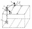 з) включить фотоголовку в режим "Измерение" высотного положения лазерной плоскости, создаваемой УСЛГ, а через 3-4 с при появлении запятой в правом углу цифрового табло индикатора - в режим "Индикация", при котором на цифровом табло индикатора высветится значение ошибки начальной выставки фотоголовки; и) посредством перемещения фотоголовки вдоль рейки добиться нулевого значения ошибки ее начальной выставки; к) выключить УСЛГ, ФГРЦ и ЛЗЦВ. 4.6. Для определения превышений стеновых панелей в процессе их монтажа (рис. 32) необходимо: а) выполнить операцию п. 4.5, б. б) установить устройство крепления УСЛГ на стеновой панели, расположенной около проема панели перекрытия, через который проходит луч ЛЗЦВ; в) посредством перемещения устройства крепления в горизонтальной плоскости по кромке стеновой панели добиться проецирования центра лазерного пятна на продольную ось его отверстия; г) закрепить устройство крепления на стеновой панели и установить на нем УСЛГ; д) выполнить операции п. 4.5, в, г; е) выставить с помощью ножек трегера (или перемещения УСЛГ в вертикальном направлении) ось лазерного луча УСЛГ на проектную высоту; ж) установить на стеновую панель в непосредственной близости от УСЛГ лазерную геодезическую рейку и выставить ориентировочно ее фотоголовку в нулевое положение, при котором визуально лазерный луч УСЛГ будет проходить через нулевую разделительную линию приемной части фотоголовки; з) выполнить операции п. 4.5, е, ж, з, и, к. Настройка лазерной подсистемы 4.7. Настройка лазерной подсистемы включает: настройку лазерной подсистемы передачи геодезической сети на монтажный горизонт; юстировку устройства начальной выставки (УНВ) УСЛГ; выставку лазерного луча УСЛГ в горизонтальное положение; юстировку лазерной геодезической рейки. 4.8. Настройка лазерной подсистемы передачи геодезической сети на монтажный горизонт производится по методике, изложенной в пп. 3.5-3.15. 4.9. Юстировку УНВ (искусственная горизонталь-вертикаль) необходимо производить в последовательности, изложенной в п. 3.6. 4.10. Выставку лазерного луча УСЛГ в горизонтальное положение с помощью искусственной вертикали УНВ (рис. 33) необходимо производить в такой последовательности: