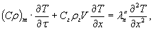где V - скорость фильтрации газообразных продуктов деструкции. Уравнение неразрывности, учитывающее изменение пористости материала и движение газообразных продуктов термодеструкции:
