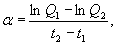 где Q - водоприток в момент времени t1, м3/сут; tп - расчетный момент времени, сут; t1 - момент времени, снимаемый с кривой изменения водопритоков во времени, сут; α - константа, определяемая по зависимости