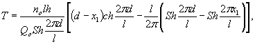 где nо - активная пористость водоносных пород; x1 - расстояние от контура питания до границы с загрязненными водами, причем x1 ≤ d, если граница этих вод расположена между дренажной системой и контуром постоянного напора и x1 > d, если граница находится с противоположной стороны. При совпадении контура загрязненных вод с границей постоянного напора (река, море) формулы (44, 46) принимают вид: - для "большого колодца", - линейного ряда