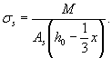 а напряжения в растянутой продольной арматуре определяются по формуле, принимая момент относительно равнодействующей усилий в сжатой зоне бетона