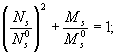 где N0s - предельная продольная сила, воспринимаемая арматурными стержнями при упругой работе; M0s - предельный момент, воспринимаемый арматурными стержнями при упругой работе. При пластической работе прочность арматуры определяется уравнением