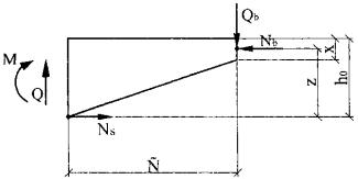 Из уравнения равновесия продольных сил получим продольное усилие в бетоне над наклонной трещиной Nb = Ns. Зная усилие х, можно определить высоту зоны бетона над наклонной трещиной