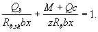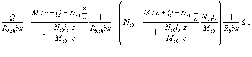 где Qb,ult = 2Rbtbx, а Nb,ult = Rbbx. Если обозначить величину 2Rbt через некоторое сопротивление бетона срезу Rb,sh, то приведенные усилия Qb,ult и Nb,ult запишутся в виде: Qb,ult = Rb,shbx, Nb,ult = Rbbx, а уравнения - в виде: в первом случае, когда усилия Qb и Nb определяются независимо друг от друга Qb = Rb,shbx; Nb = Rbbx, и во втором случае, когда учитывается взаимосвязь между усилиями Qb и Nb