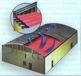Стальные фасонки, поперечные распределители и распорки присоединяются с помощью болтов к кровельным и потолочным секциям, образуя кровельную ферму.
