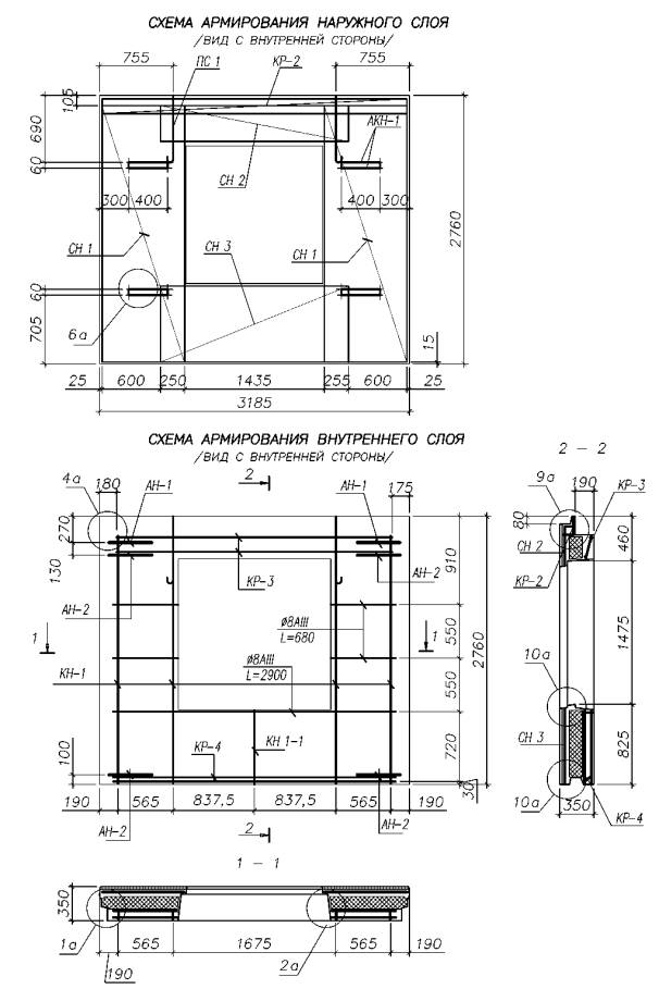 Рис. 1 - Схема расположения гибких связей в стеновой панели