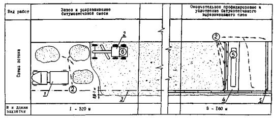 Разравнивание битумно-песчаной смеси автопрейдером Д-144 с предварительной планировкой поверхности слоя |