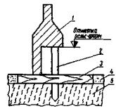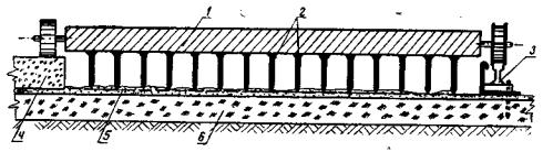 1 - подкладки под стыки рельс-форм; 2 - битумно-песчаный выравнивающий