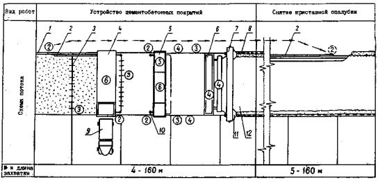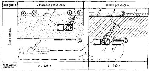 схема установки и снятия рельс-форм и расстановки рабочих: