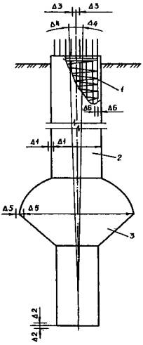 перегруза крана процесс извлечения обсадной трубы рекомендуется начинать с отрыва и подъема обсадной трубы на 100- 2.5. Контроль качества работ по устройству буронабивных свай необходимо вести на всех этапах. После окончания бурения проверяется глубина скважины и качество зачистки забоя. До начала бетонирования проверяется и подтверждается актом готовность пробуренной скважины к установке арматурного каркаса и бетонированию, а также соответствие арматурного каркаса проекту. Перед началом работ по бетонированию проверяется герметичность соединений бетонопровода. В процессе бетонирования контролируется состав укладываемой бетонной смеси и количество бетона в обсадной трубе. Подвижность бетонной смеси определяется по осадке стандартного конуса. Отбор проб бетонной смеси производят при укладке в скважину первой порции и затем каждых Качество бетона контролируется ежесменно испытанием на сжатие и водонепроницаемость контрольных кубиков, изготовление и хранение которых проводится в условиях, аналогичным условиям бетонирования и твердения бетона свай. Допускаемые отклонения при устройстве свай показаны на схеме буронабивной сваи на стр. 8. 2.6. Все работы должны выполняться в соответствии с правилами техники безопасности, СНиП III-4-80. Особое внимание необходимо обратить на следующее: - к работе по устройству буронабивных свай допускаются лица не моложе 18 лет, прошедшие медицинское освидетельствование, подготовительный инструктаж и инструктаж на рабочем месте; - площадка, на которой выполняются работы по устройству буронабивных свай должна быть огорожена, освещена и оборудована предупредительными сигналами и надписями; - все ответственные операции при устройстве буронабивных свай: укрупнительная сборка бетонопровода, заполнение скважины бетонной смесью, извлечение и монтаж бетонопровода, извлечение и снятие секций обсадной трубы, - должны выполняться под руководством сменного мастера или производителя работ; - при подъеме секций обсадных труб необходимо удерживать их от раскачивания и поворотов с помощью расчалок; - при опускании в скважину арматурного каркаса необходимо следить за тем, чтобы он не зацепился за обсадную трубу; - к управлению бетононасосами допускаются только машинисты операторы, специально обученные и имеющие удостоверения; - бетононасос при
