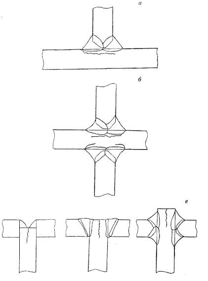 а - в тавровом соединении; При проектировании жестких сварных соединений форму разделки кромок и поперечного сечения шва целесообразно выбирать такими, при которых граница плавления шва располагается по возможности более перпендикулярно к плоскости листа, захватывая его толщину не менее чем на 70% (рисунок 5.2). Следует исключить наложение сварных швов в непосредственной близости от свободных торцов листов.