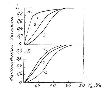 На рисунке Б.1 по результатам обследования приведены графики накопленных частот значений yz для листов разных уровней прочности и разных разрядов толщин.