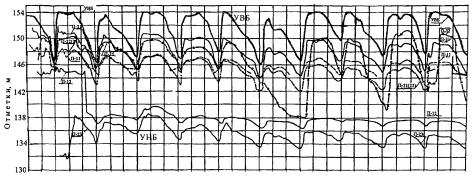 П-11, П-12, П-23 - номера пьезометров Рисунок Д.2 - Графики колебаний уровней воды в пьезометрах