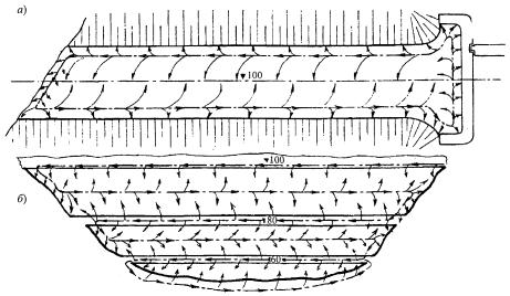 а - гребня; б - низового откоса и берм Рисунок Д.9 - Пример маршрутных схем осмотров плотины 4.16 Способы и объемы анализа результатов наблюдений определяются характером и сложностью решаемых задач. 4.17 Визуальными наблюдениями контролируются: - состояние откосов и гребня плотины (просадки, подвижки, оползни, трещины); - состояние креплений откосов и гребня плотины (разрушение креплений, просадка, оползание, раскрытие швов и деформации плит креплений); - состояние водосборных кюветов на низовом откосе, бермах и прилегающей территории (повреждение облицовок, заиление, зарастание, перемерзание); - состояние водовыпусков из закрытых дренажных устройств (целостность, проточность, перемерзание); - появление на низовом откосе плотины и в береговых ее примыканиях выходов фильтрационных вод или мокрых пятен; - появление выходов воды или просадочных воронок в примыкании грунтовой плотины к бетонным сооружениям; - появление выходов воды из основания в нижнем бьефе плотины; - появление наледей у подошвы низового откоса плотины и на дренажных линиях; - размывы откосов и берегов; - появление морозного пучения грунта, конвективного льдообразования и морозного выветривания каменной наброски; - появление мутности в фильтрующейся воде; - солифлюкция (оползание) откосов плотины и береговых примыканий. 4.18 Визуальные наблюдения ведутся путем регулярных обходов и осмотров сооружения по заранее разработанной маршрутной схеме (рис. 4.8). 4.19 Выявленные дефектные участки сооружения оконтуриваются, фотографируются, наносятся на план в виде карты-развертки (рис. 4.8). Все материалы наблюдений заносятся в специальный журнал. Информация о выявленных дефектах передается главному инженеру объекта для принятия соответствующих решений. 4.20 В местах выявления дефектов или непредвиденных явлений организуются соответствующие инструментальные наблюдения. 4.21 При визуальных наблюдениях надлежит осуществлять проверку состояния контрольно-измерительной аппаратуры - оголовков пьезометров, геодезических знаков, мерных водосливов, измерительных пультов, кабельных линий и т.п. 4.22 Результаты визуальных наблюдений, также как и инструментальных, должны использоваться при оперативной оценке работы, состояния и диагностирования грунтовых плотин. Учет их производится, в основном, путем корректировки расчетных схем, граничных условий, выключения из работы сооружения (в расчетных схемах) отдельных его дефектных элементов, если таковые зафиксированы визуальными наблюдениями, и т.п. 5 АНАЛИЗ РЕЗУЛЬТАТОВ НАБЛЮДЕНИЙ И ОЦЕНКА СОСТОЯНИЯ ГРУНТОВЫХ ПЛОТИН 5.1 Оценка эксплуатационной надежности и безопасности грунтовой плотины (как и других сооружений) должна производиться, главным образом, на основе анализа результатов систематических инструментальных и визуальных наблюдений за ее работой и состоянием, представляемых в обработанном и обобщенном виде в форме графиков, эпюр, номограмм, числовых таблиц и т.п. 5.2 Главными задачами анализа результатов наблюдений за плотиной являются: - оценка контролируемых показателей работы и состояния плотины и установление степени их соответствия (несоответствия) проектным и нормативным требованиям, соответствующим критериям безопасности; - выявление и оценка опасностей для плотины, создаваемых неблагоприятными явлениями, процессами