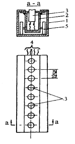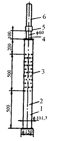 1 - шов; 2 - железобетонное корыто; 3 - асфальтовая мастика; 4 - инъекционные скважины; 5 - напорная грань; 6 - инъекционное заполнение контактного шва Рисунок К.4 - Восстановление водонепроницаемости уплотнения деформационного шва, выполненного неудаляемыми железобетонными корытами, при наличии обходной фильтрации по контакту железобетонные корыта - бетон сооружения 6.3.3 Переносной электронагреватель (рис. Г.6) представляет собой установленный в направляющей втулке трубчатый электронагреватель, снабженный на нижнем его конце конической насадкой, и крестовидной приставкой, на которую передается вертикальное давление от домкратов. До передачи усилия на нагреватель от домкратов его включают для разогрева ближайшего к нему слоя асфальтового материала заполнения шва. После этого электронагреватель при помощи домкратов вдавливают в материал заполнения шва и разогревают его. В ходе вдавливания в шов и разогрева в нем асфальта электронагреватель наращивают.