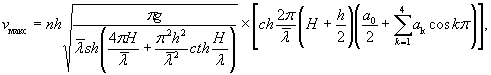 где р - волновое давление в точке; х - расстояние от уреза до точки измерения; g - ускорение свободного падения; ρ - плотность воды; h - высота волны;
