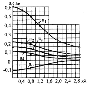 где п - коэффициент, учитывающий влияние пологости откоса (табл. Е.2); h - расчетная высота волны; Н - глубина воды у основания откоса или на краю прибрежного подводного склона; g - ускорение свободного падения; a0, ак -коэффициенты, определяемые по рис.
