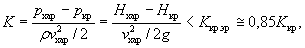 где pхар = γНxap - характерное абсолютное давление (как правило, осредненное по времени) вблизи обтекаемого элемента - возбудителя кавитации без учета вызванных им возмущений, причем рхар = ра + ризб или Нхар = На + hизб, ризб = γhизб - избыточное давление; ра = γНа - атмосферное давление, определяемое в зависимости от высоты местности над уровнем моря (табл. И.3); ркр и Нкр - абсолютное давление и пьезометрический напор, соответствующие давлению водяных паров (табл. И.4); vxap - характерная скорость течения вблизи обтекаемого участка поверхности, определяемая, как правило, с учетом реальной эпюры скоростей на подходе; в некоторых случаях допустимо с запасом принимать среднюю по сечению скорость; Kкр - критический параметр кавитации для различных элементов или форм неровностей бетонной поверхности (рис. И.2); γ = ρg - удельный вес воды; ρ - плотность воды; g - ускорение свободного падения; при ρ = 1 т/м3 и g = 9,81 м/с2 γ = 9,81 кН/м3. Таблица И.3 Атмосферное давление для различных отметок местности над уровнем моря