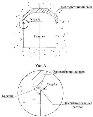 - трещина; 2, Размеры в метрах Рисунок Л.3.5 - Уплотнение трещин стен галереи инъекцией