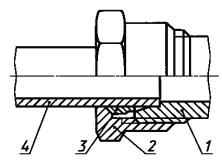 Б.2.2. Монтаж резьбовых соединений трубопроводов с ввертным концом корпусных деталей по ГОСТ 22526 с плоской медной прокладкой в соответствии с рисунком Б.1 рекомендуется проводить с моментами затяжки, приведенными в таблице Б.1.