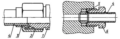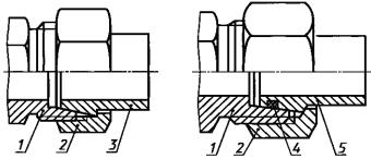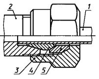 Б.2. Монтаж резьбовых соединений трубопроводов с ввертным концом корпусных деталей с уплотнением плоской прокладкой