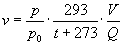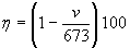 где v - количество выделившегося газа на 1 А-ч, приведенного к температуре 20°С и давлению 101,3 кПа; р - значение атмосферного давления при проведении измерения, кПА; p0 - значение 101,3 кПа; t - температура окружающей среды, °С; V - объем собранного выделившегося газа, мл; Q - количество электричества, принятого аккумулятором во время сбора газа, А·ч. Эффективность газовой рекомбинации η, %, используя значение, полученное при расчете по формуле (1), рассчитывают по формуле