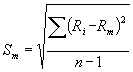 В тех случаях, когда в качестве единицы прочности бетона может быть принята средняя прочность бетона конструкции, вычисленная как среднее арифметическое значение прочности контролируемых участков конструкций, среднее квадратическое отклонение прочности бетона Sm вычисляют с учетом средних квадратических погрешностей градуировочной зависимости по формуле