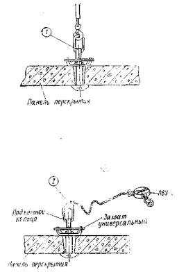 Рис. 15. Подъем плиты перекрытия универсальным грузозахватным устройством