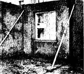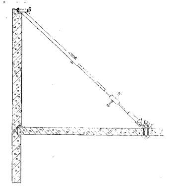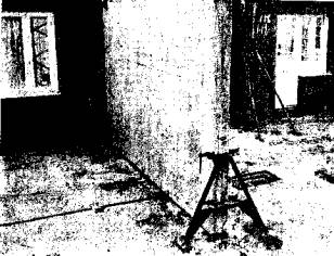 Рис. 8. Универсальный винтовой захват Штурвал захвата подвергнуть статическим испытаниям нагрузкой 1 тс в течение 10 мин. Нагрузку прикладывать в соответствии с рисунком. Захват при испытаниях должен находиться в рабочем положении и не иметь люфта относительно панели. В результате испытании в захвате, не должно быть никаких остаточных деформации, трещин в сварных швах и околошовных зонах. При обнаружении во время испытании каких-либо дефектов последние должны быть устранены, после чего испытания вызвавшие появление этого дефекта, повторяются. XI. Объем и содержание испытании универсального подкоса для временного креплении панелейВ объем испытаний входят: а) внешний осмотр; б) испытания без нагрузки; в) статические испытания. При внешнем осмотре проверяется точное соответствие размеров изготовленных элементов подкоса размерам, указанным в чертежах (рис. 2). При испытании без нагрузки проверяется правильность установки подкоса. При статическом испытании к подкосу необходимо приложить нагрузку, равную 2,03 тс. Прикладываемое усилие должно быть как растягивающим, так и сжимающим. Каждое усилие необходимо выдержать в течение 10 мин. В результате испытании в подкосе не должно быть никаких остаточных деформации. При обнаружении во время испытании каких-либо дефектов последние должны быть устранены, после чего испытания, вызвавшие появление этого дефекта, повторяются. XII. Объем и содержание испытаний универсального 6-ветвевого стропаВ объем испытаний входят: а) внешний осмотр; б) испытания без нагрузки; в) статические испытания; г) динамические испытания. При внешнем осмотре проверяется точное соответствие размеров изготовленных элементов стропа размерам, указанным в чертежах (рис. 3 - 6). При испытании без нагрузки проверяется правильность строповки поднимаемого изделия. При статическом испытании к стропу необходимо приложить нагрузку, равную 15 тс. Усилие следует прикладывать в течение 10 мин. При динамическом испытании к стропу прикладывается нагрузка, равная 13 тс. В результате испытании в стропе не должно быть никаких остаточных деформаций. При обнаружении во время испытании каких-либо дефектов, последние должны быть устранены, после чего все испытании, вызвавшие появление этого дефекта, повторяются. XIII. Основные указания по производству работПрименять оснастку и грузозахватные приспособления в строгом соответствии с ППР и настоящими Методическими указаниями. При этом необходимо помнить, что любую стеновую панель сдует временно крепить только двумя подкосами (рис. 9).