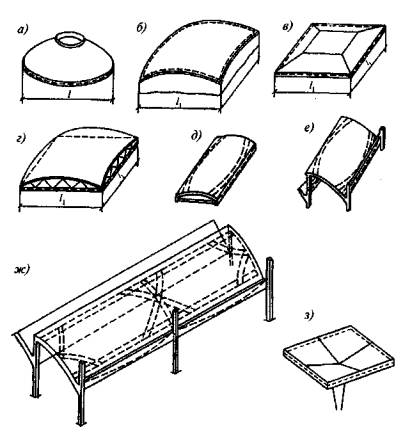 Тонкостенные пространственные системы - конструкции, у которых два измерения одного порядка существенно превышают третье (толщину).