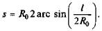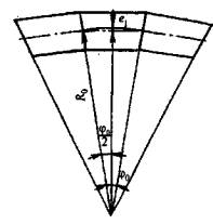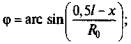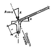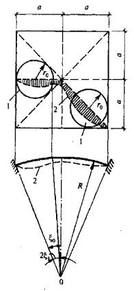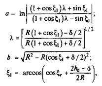 где R0 - радиус оси свода; φ0 - центральный угол, ограничивающий края прямолинейного элемента складки.
