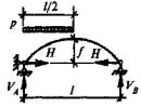 При расчете складчатых сводов с треугольным очертанием поперечного сечения, распор которых воспринимается затяжками, расположенными в двух уровнях (см. рис. 7.9 и 7.10), следует принимать, что усилия между затяжками распределяются равномерно, при этом равнодействующая усилий в затяжках расположена в середине расстояния между ними по высоте. 7.11 Формулы для определения опорных реакций в двухшарнирной арке при равномерно распределенной, увеличивающейся к пятам (п. 7.10) и односторонней нагрузках с учетом влияния смещения опор и упругого обжатия арки на величину распора приведены в табл. 7.1. Таблица 7.1