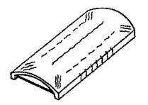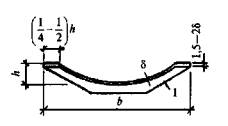 1 - стык элементов свода Рисунок 7.15 - Свод, монтируемый из двух криволинейных элементов 7.40 Элементы волнистых сводов двоякой кривизны (рис. 7.3, в, тип 3) шириной до 3 м, криволинейные в продольном направлении, по поперечным краям имеют ребра, повышающие жесткость их в поперечном направлении (рис. 7.16). Элементы сводов соединяются сваркой закладных деталей с последующим замоноличиванием стыков. 7.41 Жесткость элементов сводов трапециевидного и волнистого поперечных сечений в период их транспортирования и монтажа до соединения со смежными складками и волнами рекомендуется обеспечивать установкой временных распорок, диафрагм и т.п.