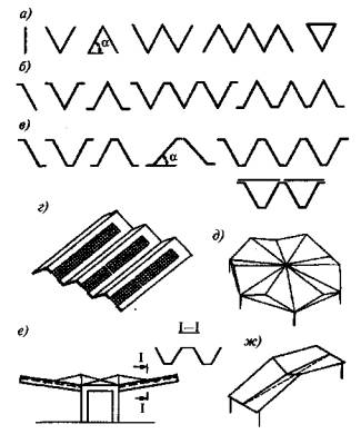 Складка - оболочка, составленная из отдельных пластинок, соединенных между собой и образующих поверхность многогранника. Складка из прямоугольных пластинок называется призматической. Балочные складки состоят из плоских элементов-граней, соединенных между собой под углом так, что в месте их сопряжения образуется прямолинейное ребро.