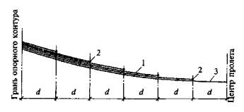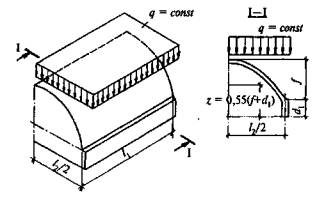 где d1 - высота бортового элемента; q - приведенная расчетная нагрузка на 1 м2 горизонтальной проекции с учетом массы бортовых элементов.